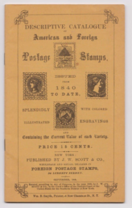 - It was titled: “Descriptive Catalogue of American and Foreign Postage Stamps, issued from 1840 to Date, Splendidly Illustrated with Colored Engravings and Containing the Current Value of Each Variety.”