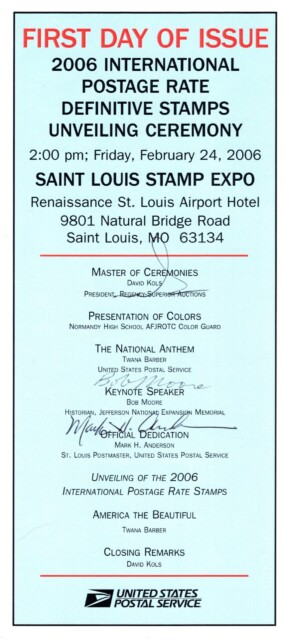 St Louis Stamp Expo (EXPO) Show has been the host of several of the USPS’s Official First Day of Issue Ceremonies over the years of the show. Hosting one of these ceremonies is an honor and is a special event where the USPS, the stamps designers, philatelists, and special philatelic organizations are gathered to introduce a new stamp to the country.