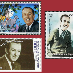 Waly Disney was featured on the U.S. Scott #1355 in 1968 stamp and many others around the world.